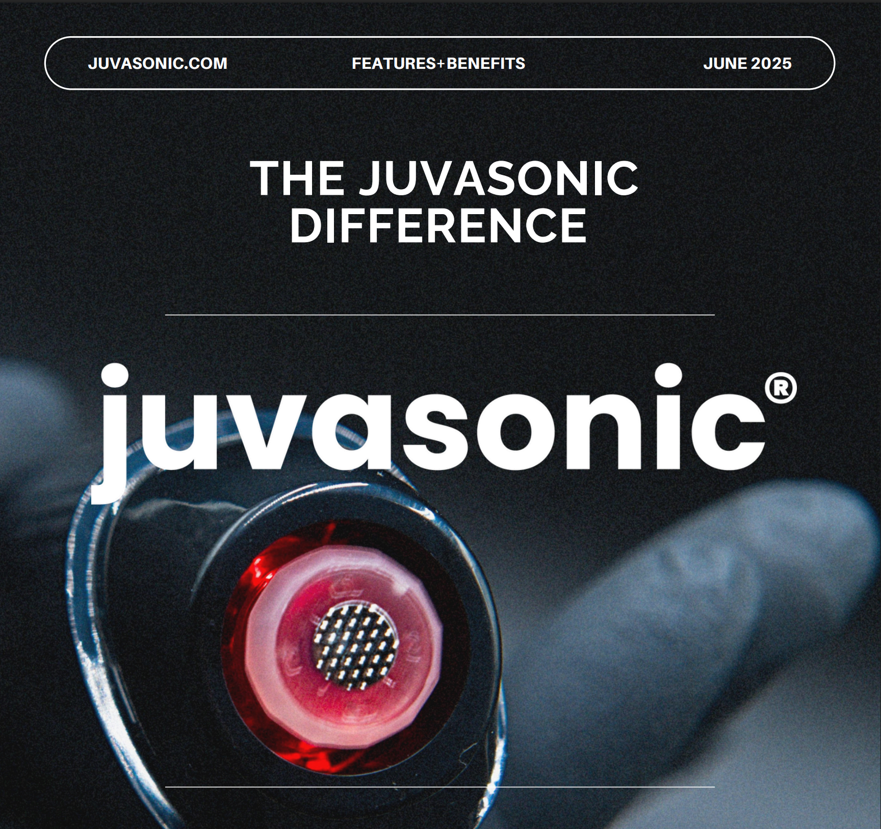 Through controlled ultra-sonic vibration and mechanical energy, Juvasonic® helps bridge the gap between topical application and deeper cosmetic benefit—unlocking the full potential of high-performance serums without discomfort or downtime.