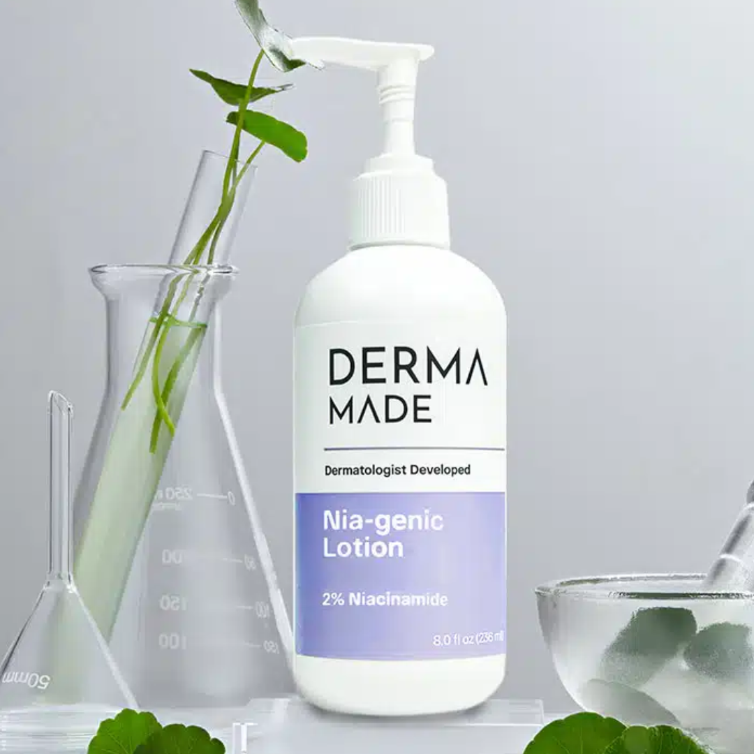 Derma Made's Nia-genic Lotion (8.0 fl oz) will moisturize and keep skin hydrated throughout the day. Can be used morning, evening, or both. Niacinamide is a potent antioxidant that helps smooth out lines and wrinkles and improve skin texture.