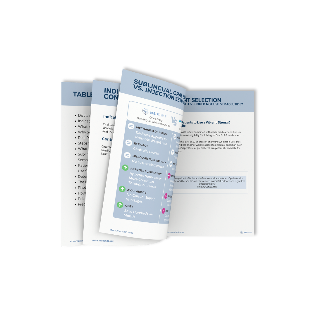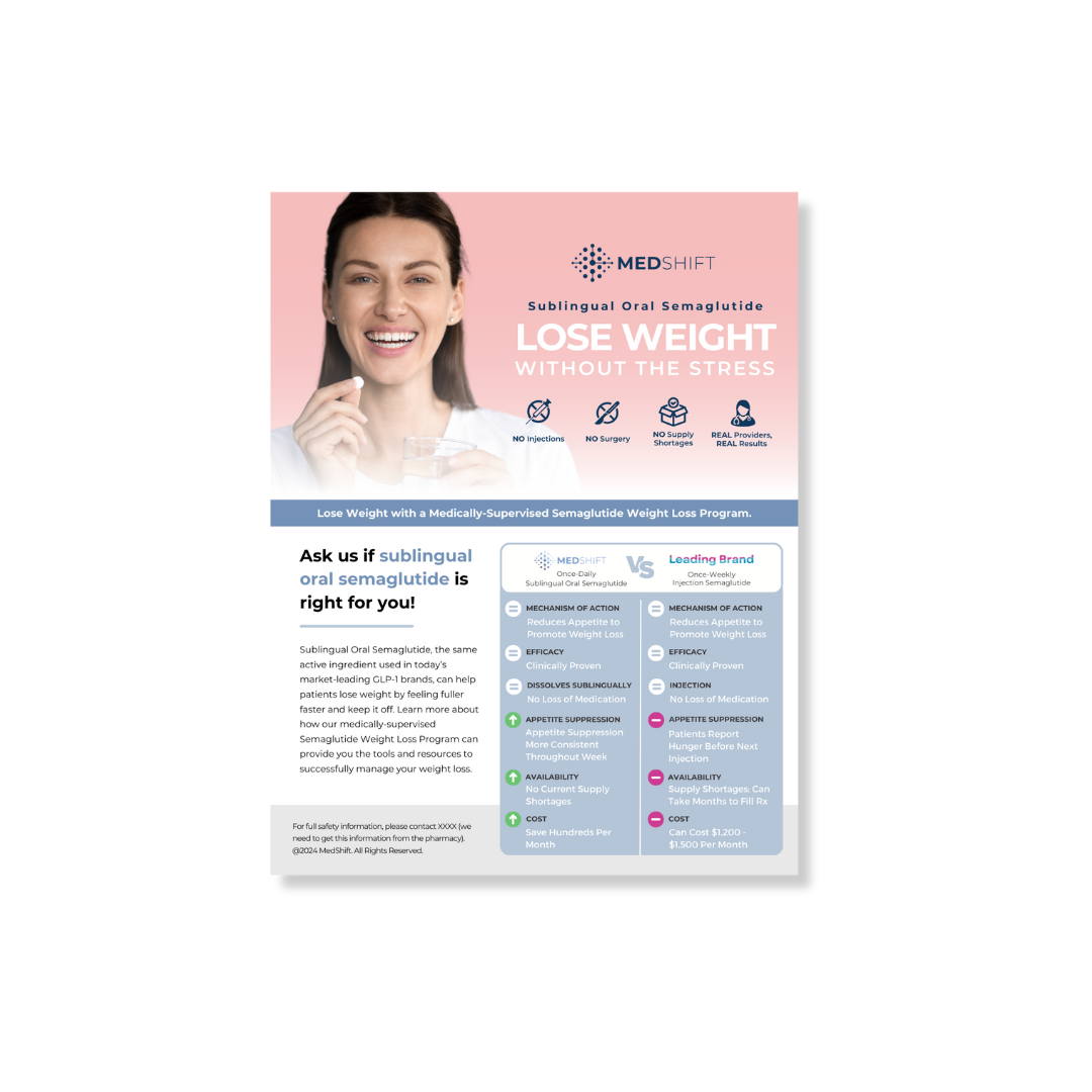 Bringing medically supervised weight loss into your practice doesn’t have to be complicated. MedShift provides the guidance and training to help aesthetic professionals seamlessly integrate Sublingual Oral Semaglutide into their offerings.