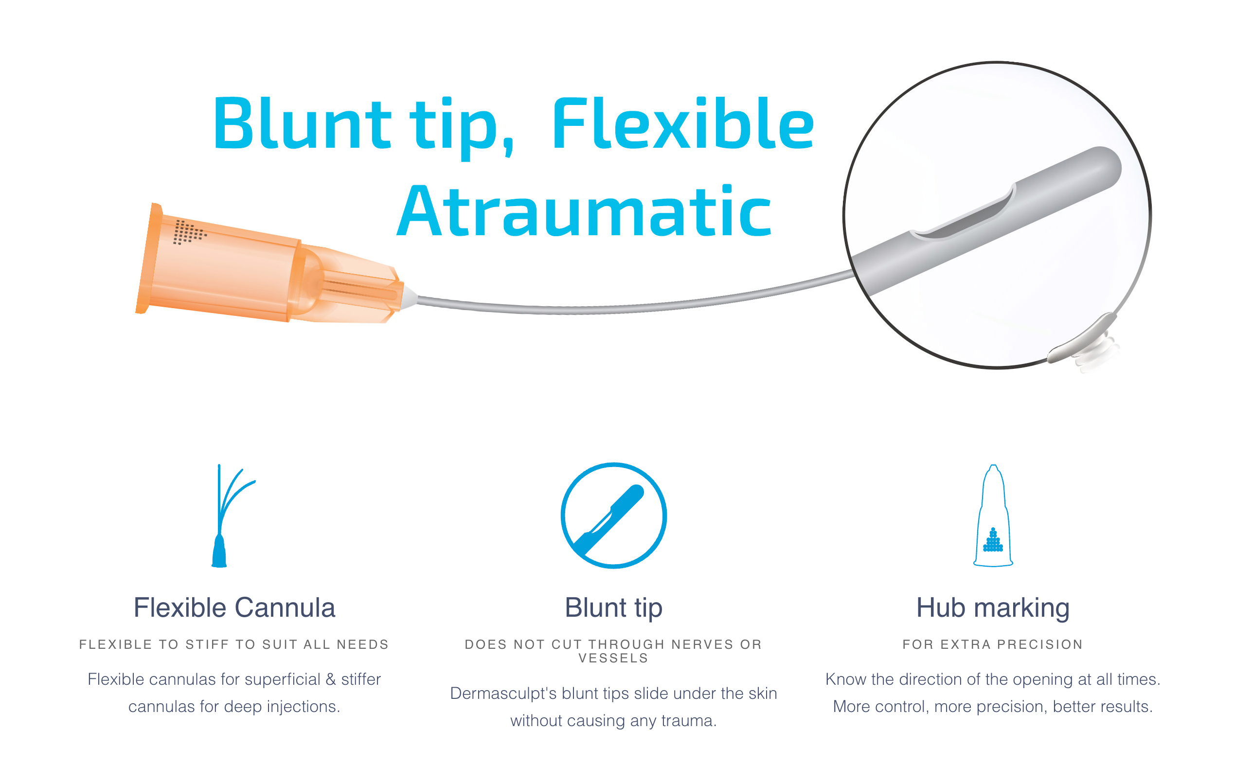 DermaSculpt blunt-tip, flexible microcannulas are the number one choice for atraumatic filler injections!